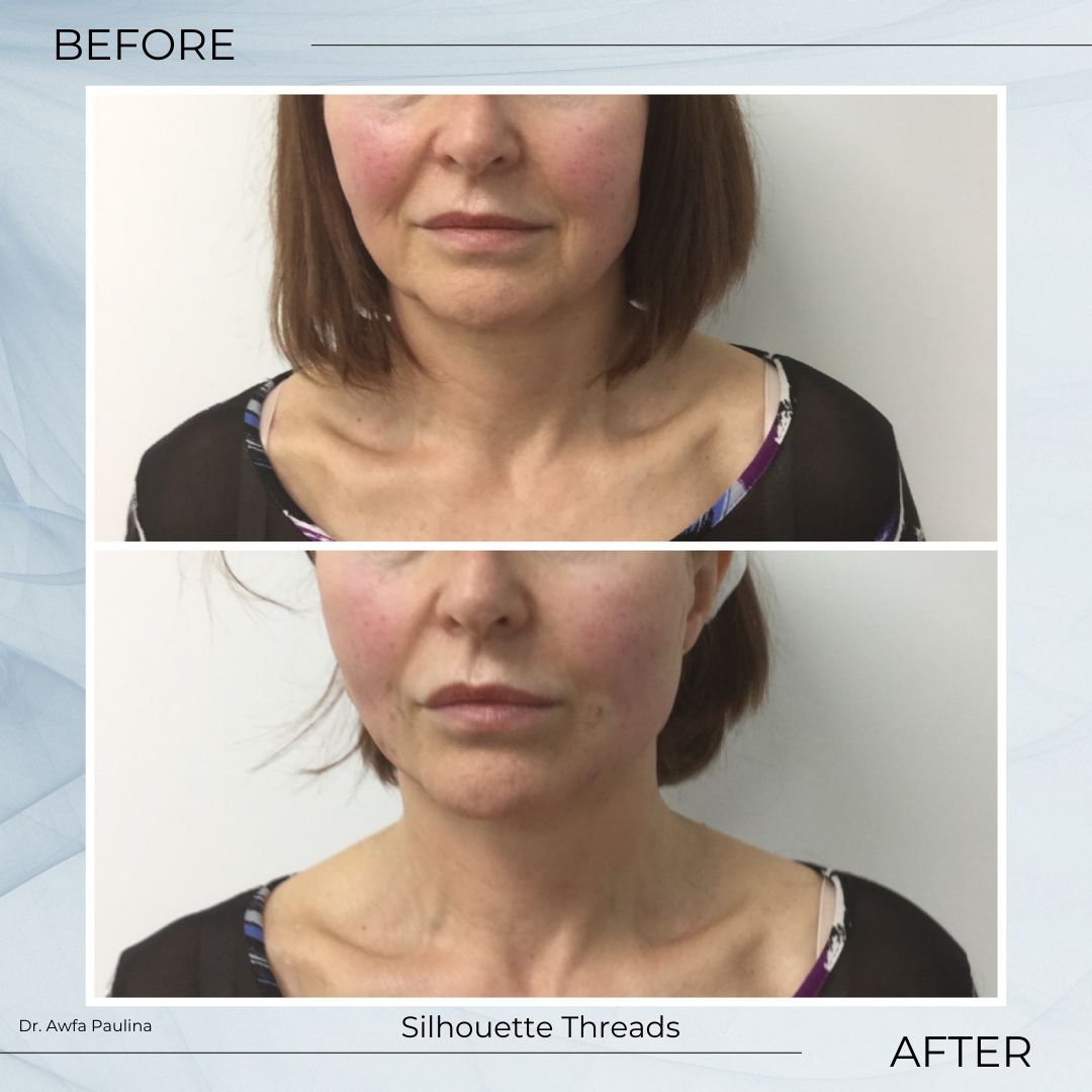 The Silhouette Soft (suture lift or thread lift) face lift is non-surgical procedure where sagging skin usually around the mid-face, cheeks, jowls, brows and neck, is lifted by tiny threads to give the face a more youthful appearance.