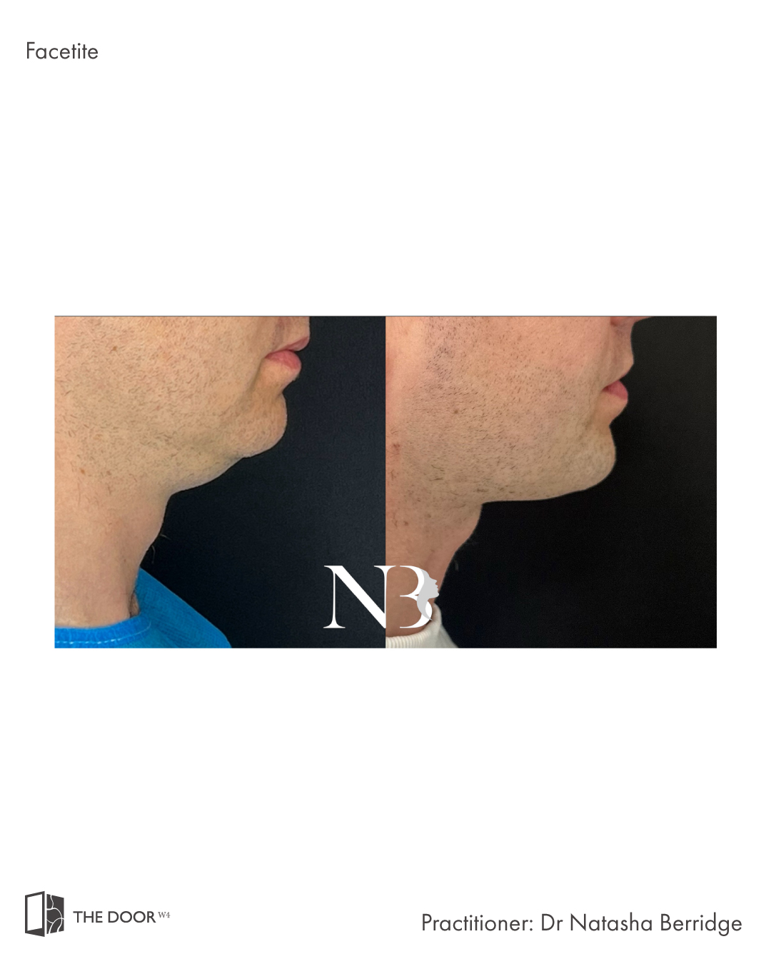 In this video, Dr. Natasha Berridge explains the process of submental chin liposuction and RF FaceTite for this patient, highlighting how the combination of treatments helped reduce the appearance of a double chin and achieve a more sculpted jawline.