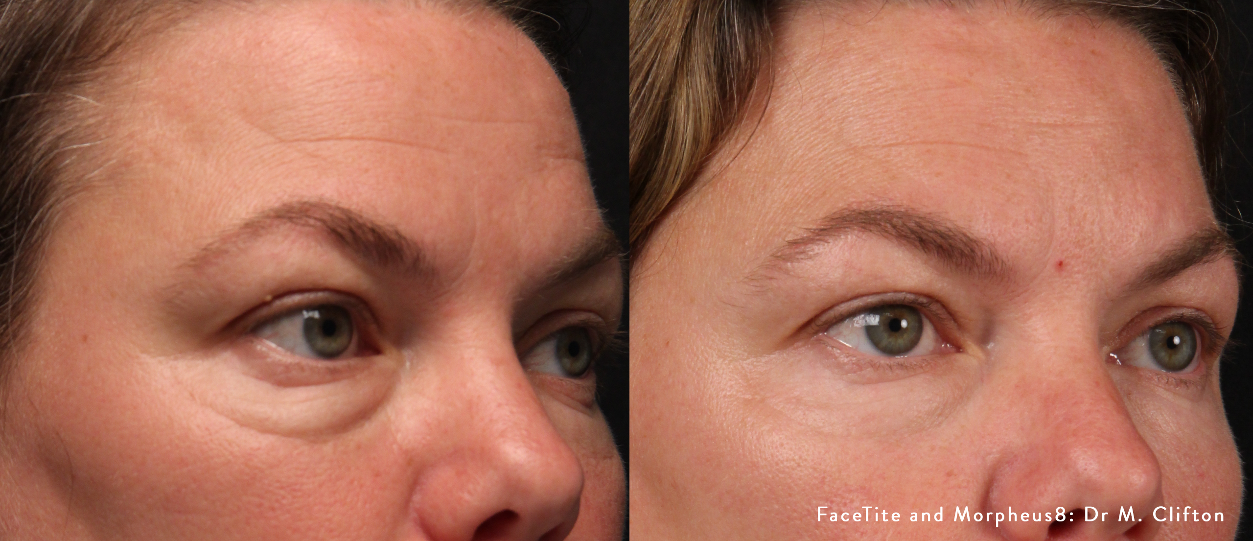 Unlike traditional facelifts, FaceTite™ requires no incisions or lengthy recovery, offering a safe, effective alternative. Results are gradual, with skin tightening by up to 40%, and noticeable improvements over the next 3–6 months that can last up to 18 months.